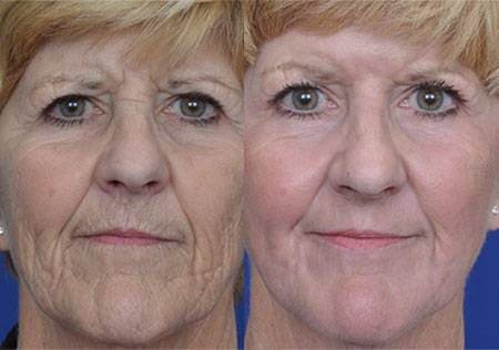 Viditeľné výsledky: vrásky sú úplne vyhladené, kontúry tváre sú